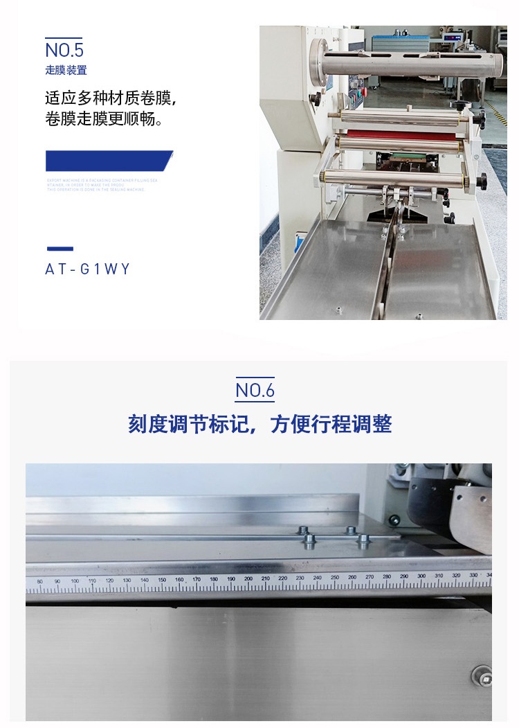 D、滑動式橫封機構(gòu),可上下任意調(diào)整橫封的中心高度。